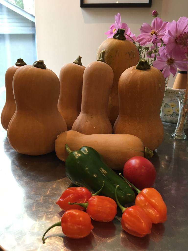 Special shout out in appreciation to Catherine’s ‘squash on steroids,’ which brought such delight, amazement and joy all season, as it exuberantly grew and grew to inhabit the yard, and gave and gave non-stop of its bountiful produce, even sprouting more new blossoms optimistically right through to October harvest time. We admire and are uplifted by its spunk, generosity and will to thrive. A welcome distraction and good inspiration for these strange times.