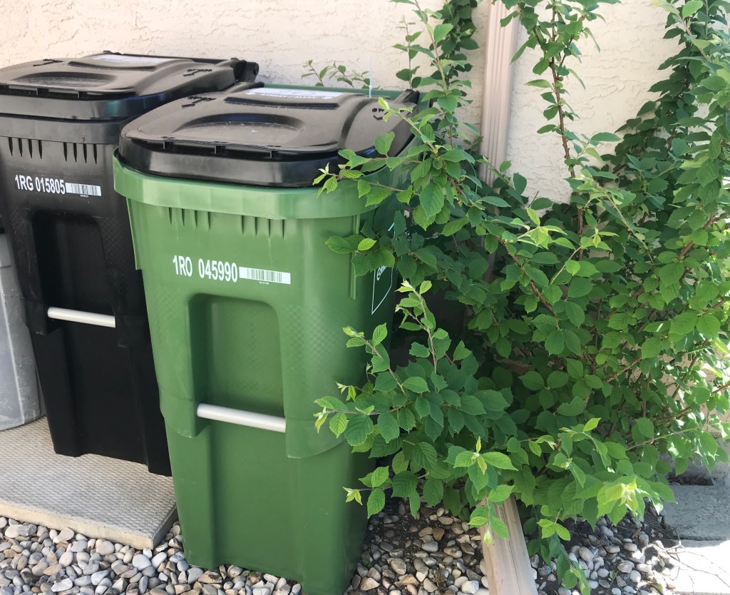 Citizens of Edmonton are receiving one of the two garbage container choices. The smaller 120L garbage container (shown above) is cheaper by $5.00 a month than the larger 240L one as an incentive to pay less if you put out less garbage. One can always request a different size bin over the next few months, by calling 311, so if you are not filling your large bin more than half, you might want to downsize. Maybe this is a welcome challenge to keep one’s garbage to a minimum. Packaging from products we buy is bulky so it might require assessing and changing the way we shop. We can try to purchase food with less packaging, and do less online shopping which has been shown to create more packaging waste.