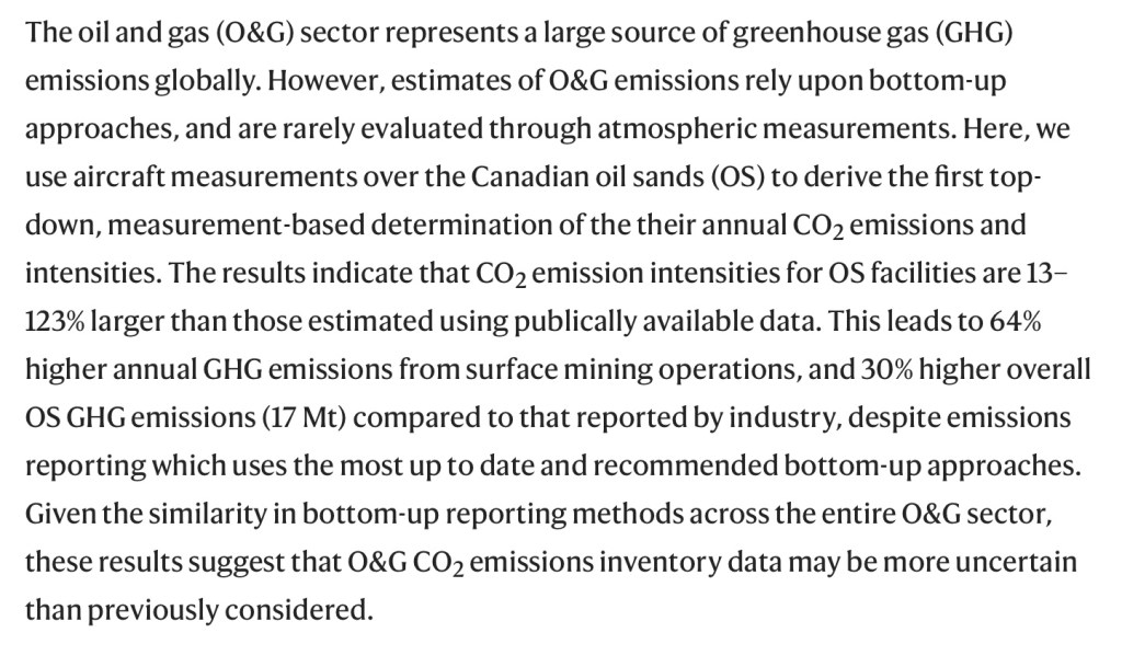 In an article by Nature.org titled” Measured Canadian Oil Sands CO2 Emissions Made Using internationally Recommended Methods” the abstract says: